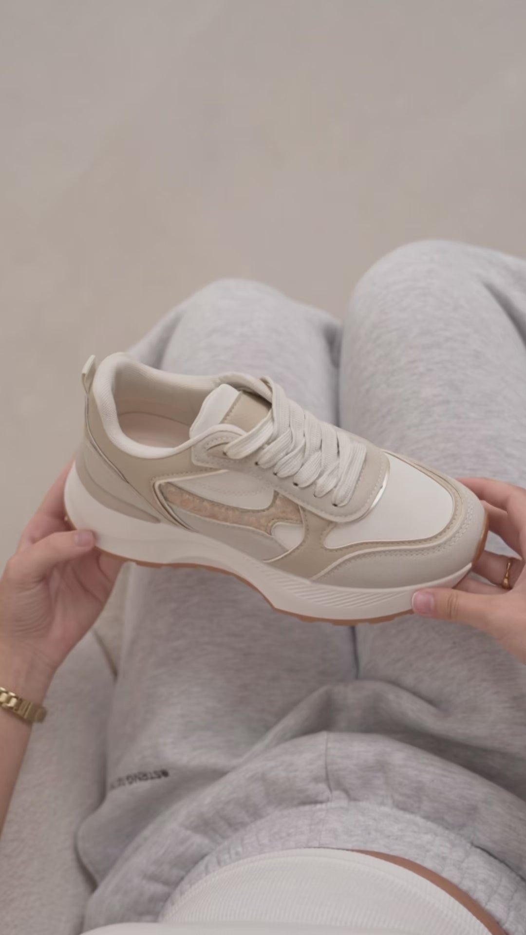 Basket femme blanche épaisse élégante avec empiècement beige et léopard brillant