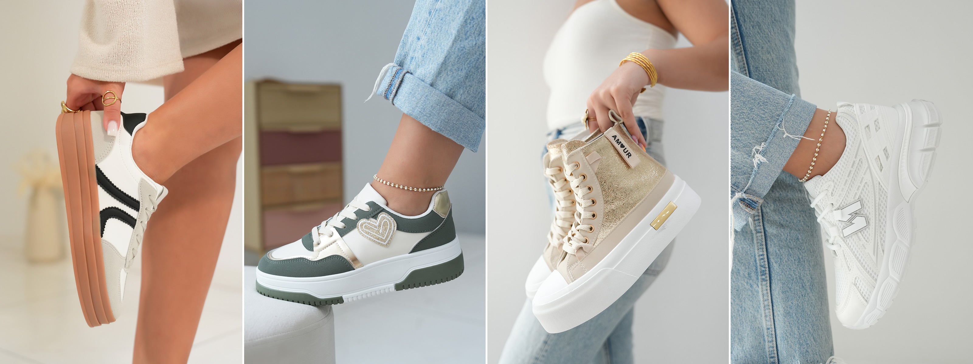 Welcome to the world of fashion where every step counts and every shoe tells a story. At Modress, we are passionate about offering an exceptional range of women's shoes, perfectly in line with the trends of 2025. Our collections are a tribute to femininity and style, highlighting the essentials of any wardrobe: trendy sneakers, graceful heeled sandals, comfortable wedge sandals, and versatile flat sandals. Our women's sneakers are the epitome of urban style and modern comfort. With our flagship models of white sneakers, you have a reimagined classic, ready to pair with any outfit. Whether made of lightweight canvas or faux leather, our sneakers are designed to accompany you every day.
